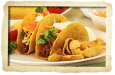Enjoy our delicious plates with fresh chewy corn tortilla rolled into a cheese enchilada smothered in chili gravy and a cheese taco draped with light-colored cheese sauce. Or if you ask for our fresh-fried taco shell, if greasy, and stuffed with beef, lettuce, tomato and cheese, and the refried beans have that deep, almost sour taste.